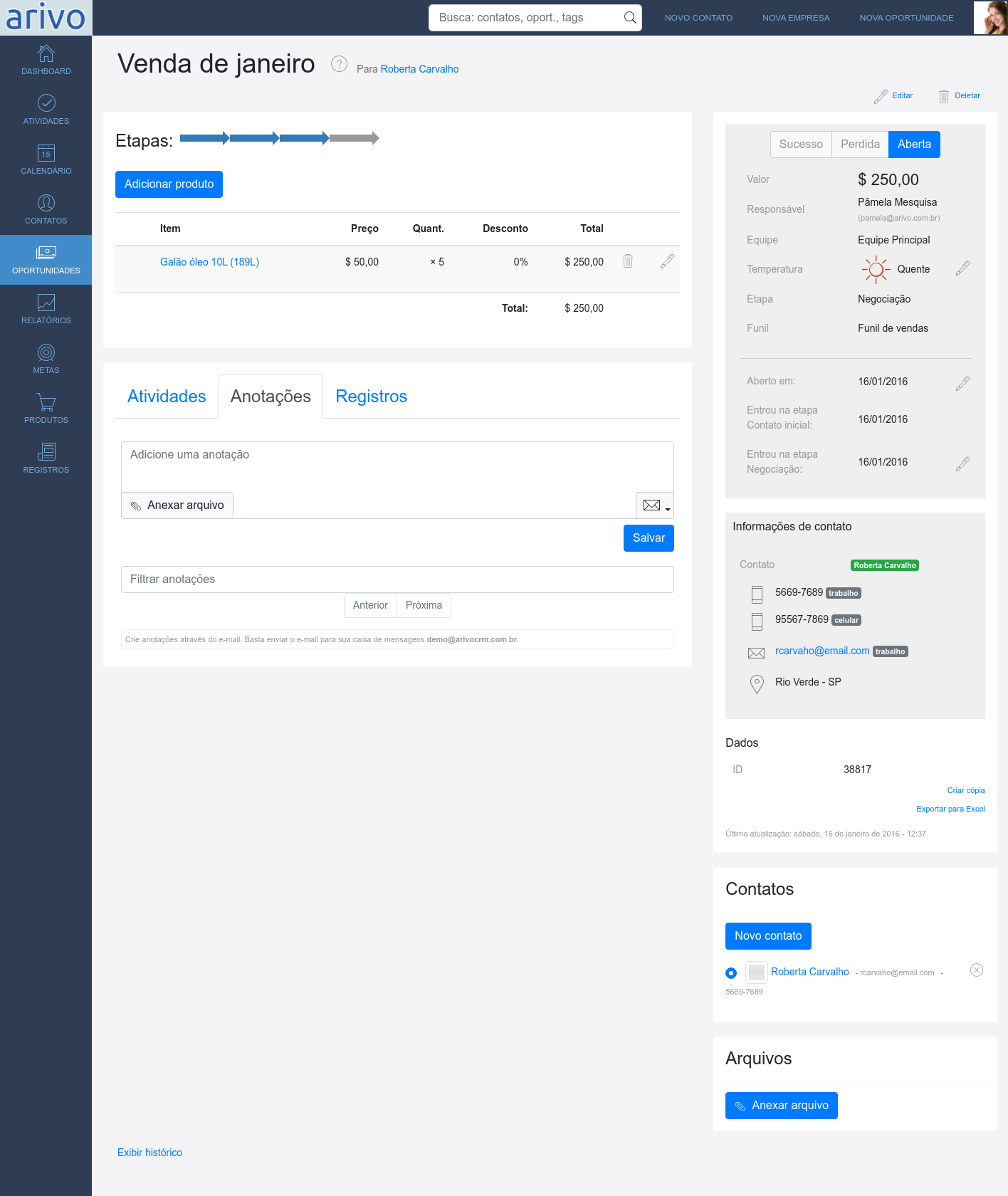 Veja o estágio de cada oportunidade e tenha todas as informações de seu andamento. Entenda quais as reais chances de fechamento e em que clientes focar.
